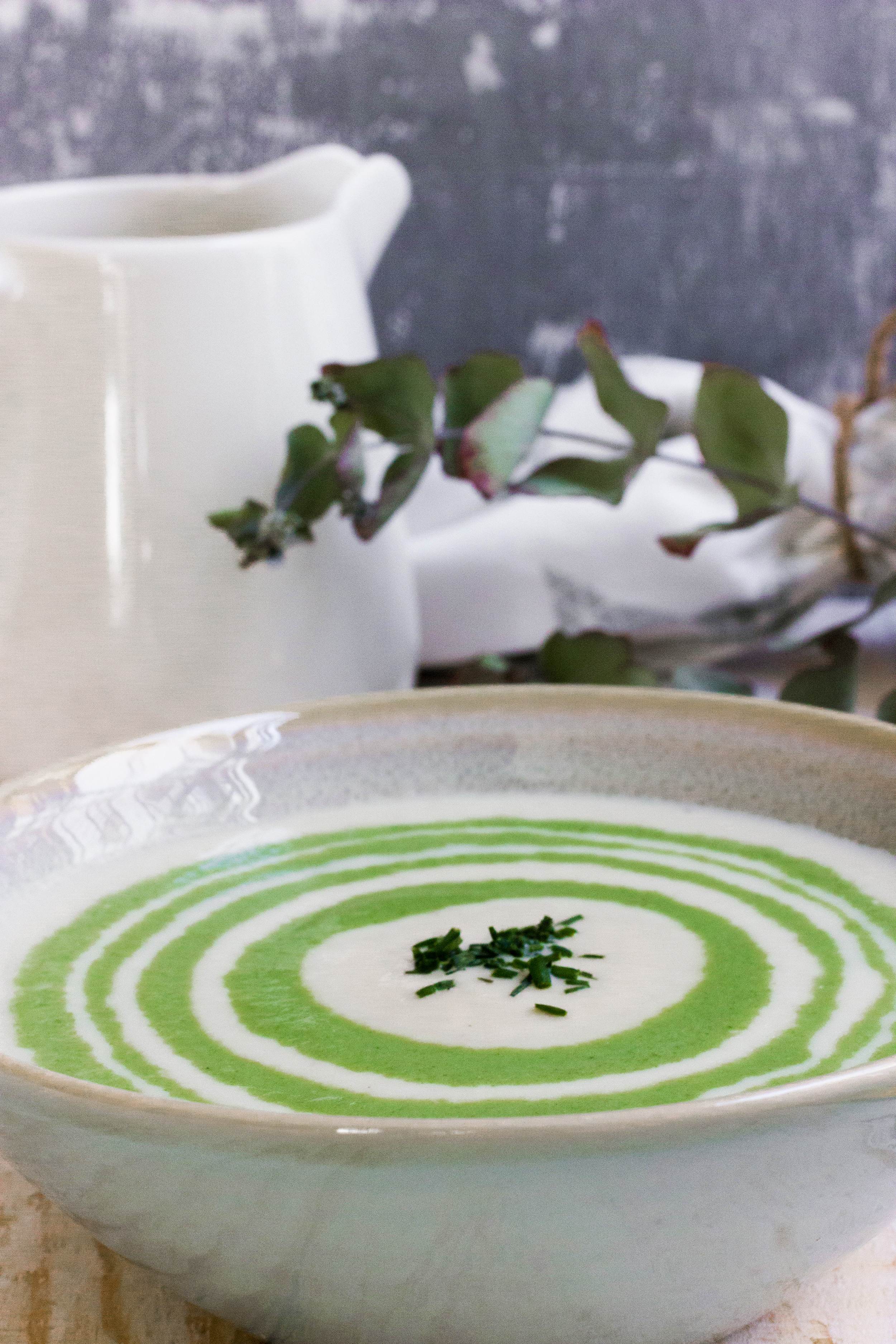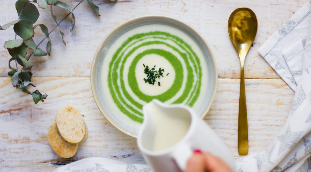 Comer sano y bonito es posible. Este otoño hacemos cremas de todo. Son el mejor reconfortante para afrontar los días frescos  que van llegando. Podemos tomarlas solas, o juntas, como en esta ocasión. Las hice para tomarlas por separado, pero al ver en color tan bonito que tenían, las quise juntar en una misma ración y hacer algo donde se distinguieran a la perfección las dos cremas. El truco para que las dos cremas formen círculos, sin que se mezclen los colores es poner cama crema en una jarra, e ir añadiendo poco a poco alternando primero un poco de una y después la otra, hasta que llenemos el bol.